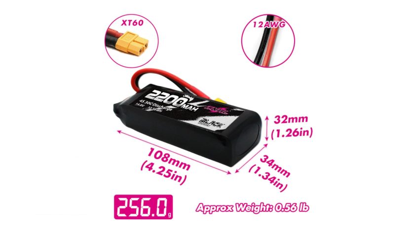 - Voltaje: 14,8 V / 4 celdas / 4S1P