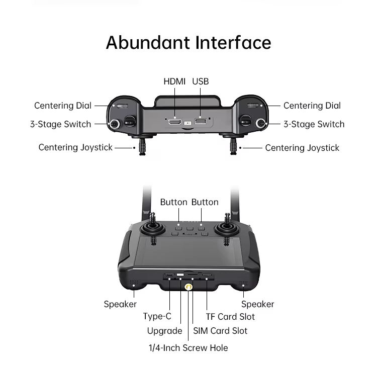 - Basado en Android: Permite instalar aplicaciones de planificación de misiones como Jiyi IFLY, Boying Agri, QGroundControl o Mission Planner, facilitando la creación de rutas de vuelo automáticas.